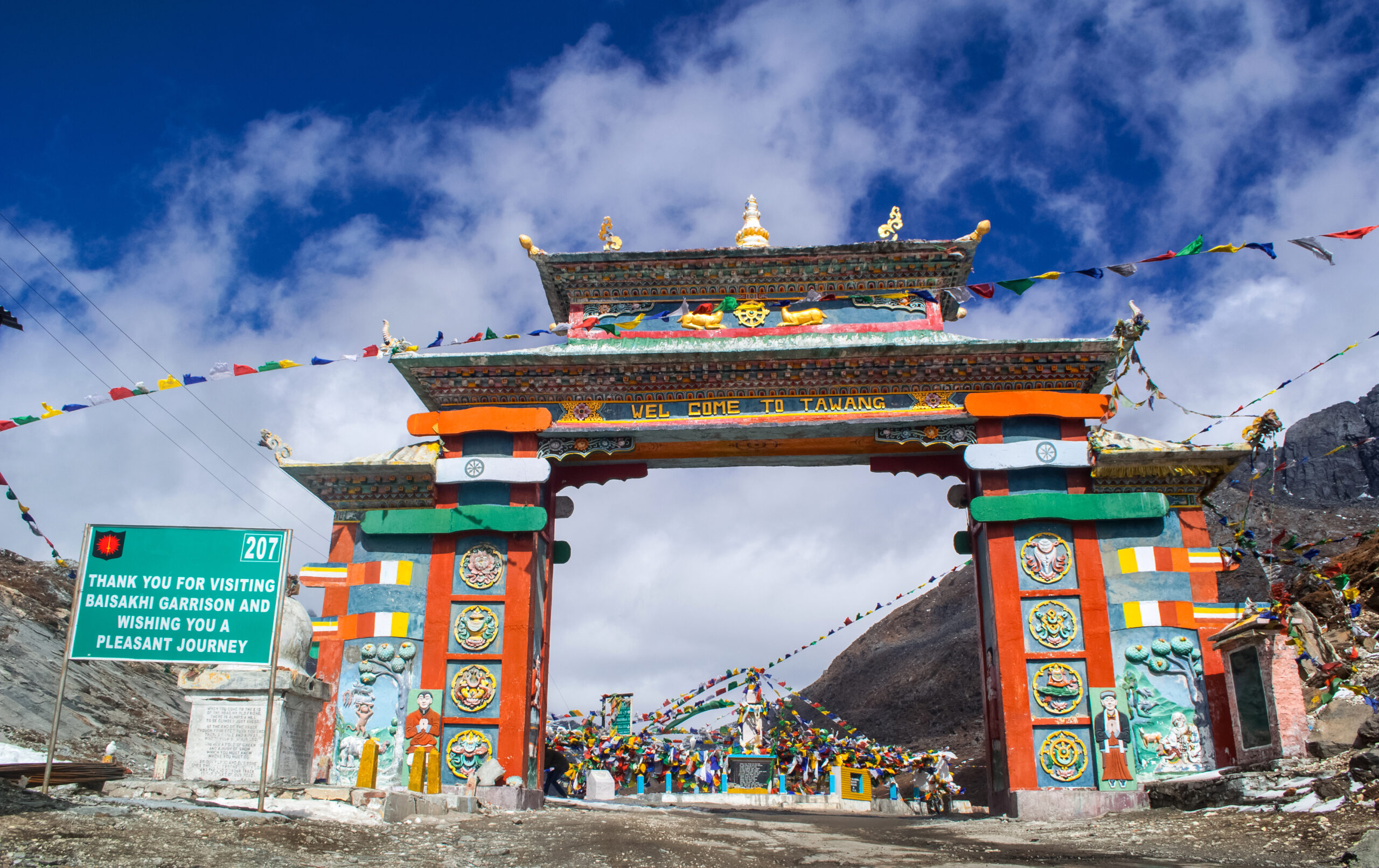 Start early for one of Northeast India’s most scenic mountain drives• Pause at Mandala Top, a hilltop meditation site with 108 whitewashed chortens and panoramic views• Drive across Sella Pass, one of India’s highest motorable roads at 13,700 ft• Stop at the turquoise-hued Sella Lake, often rimmed with snow• Visit Jaswantgarh War Memorial en route before arriving in Tawang by evening